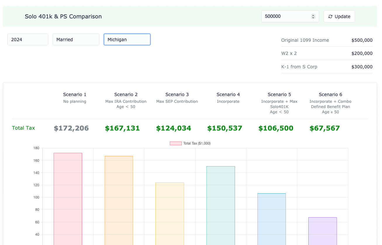 .Developed logic for comparing six different tax scenarios.